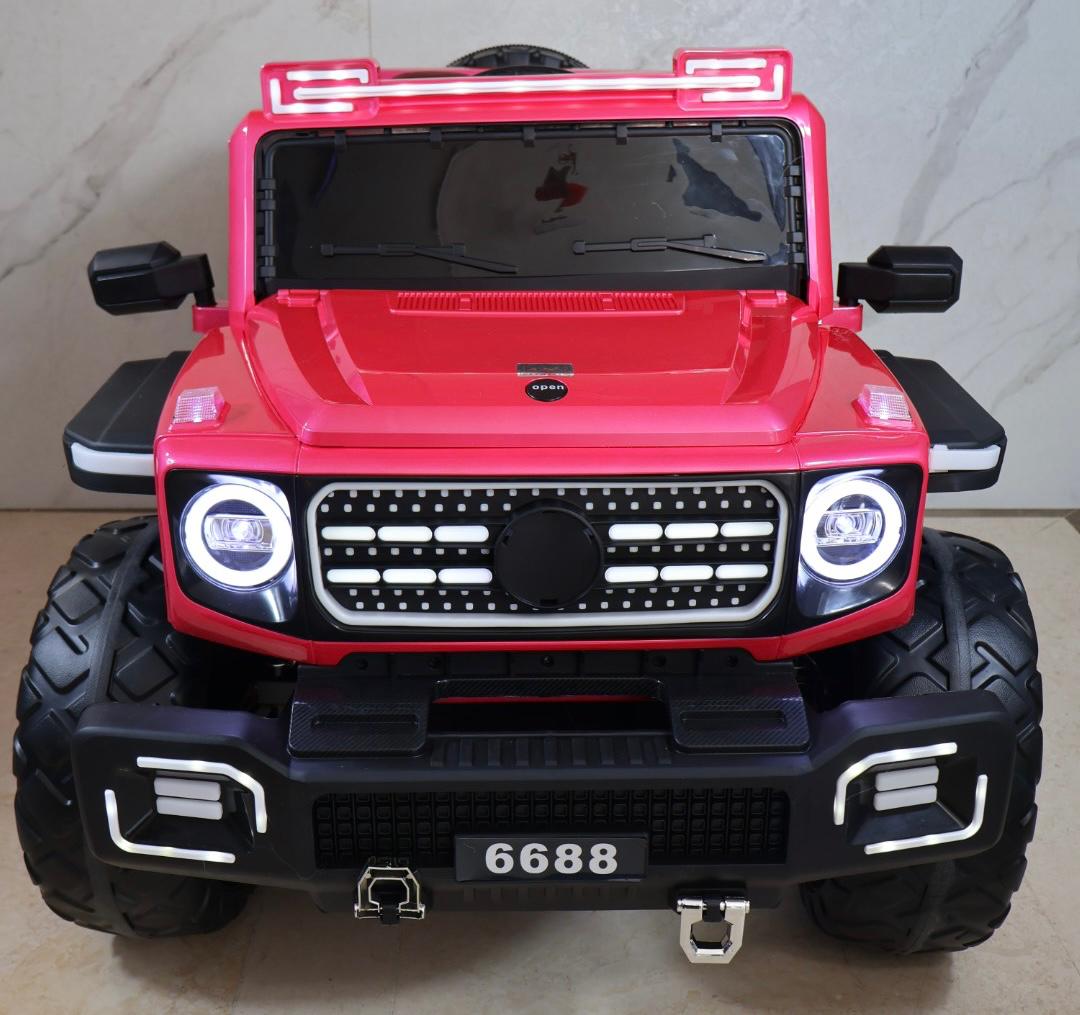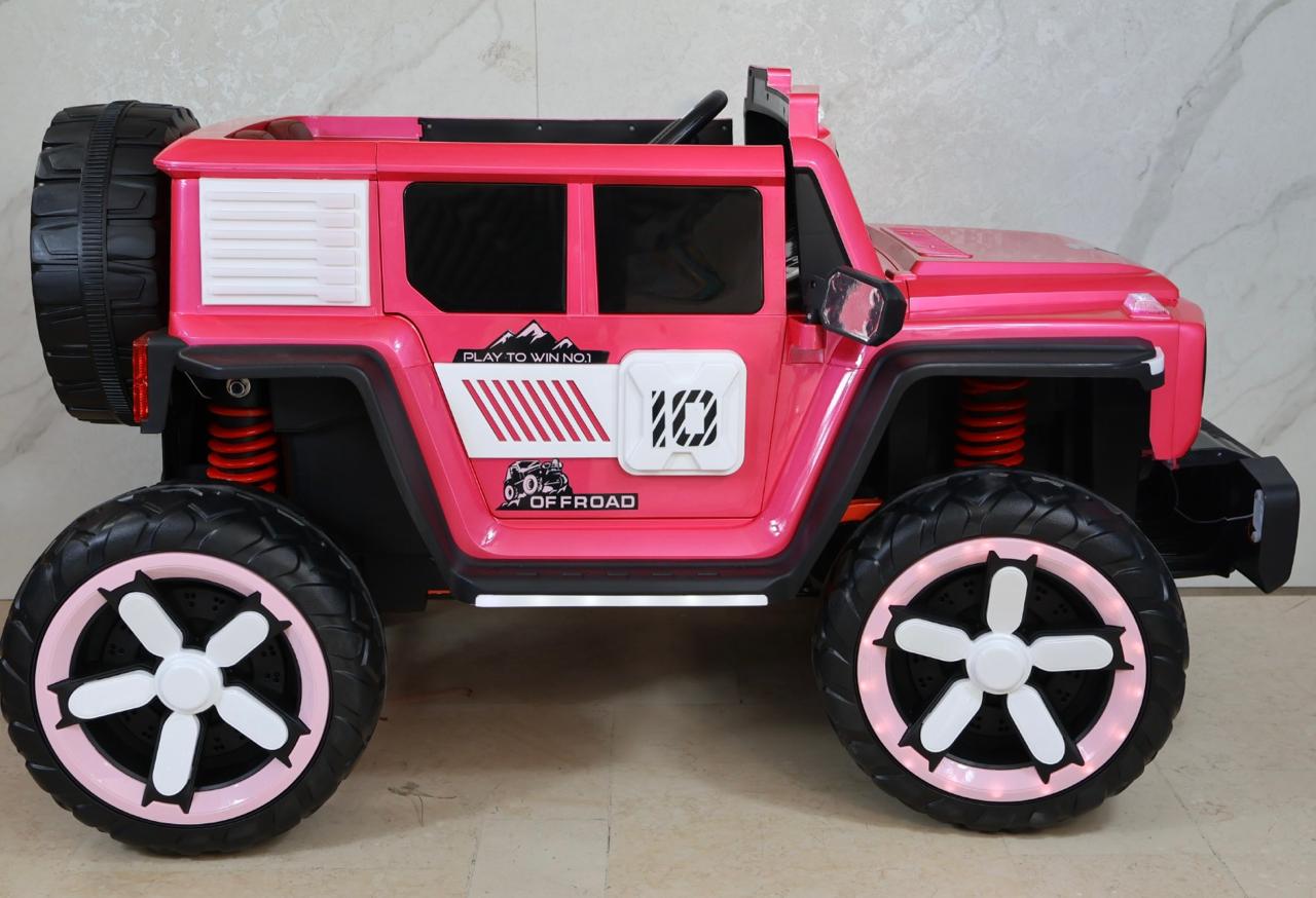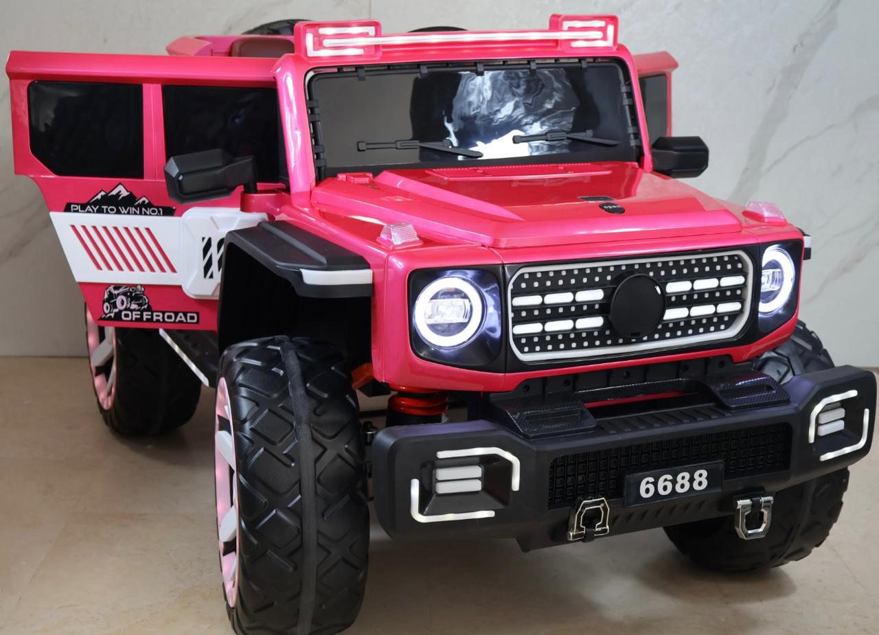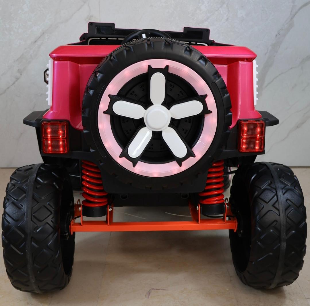 carro eléctrico con mando a control remoto, con opción de manejo manualmente, cuenta con suspencion y 5 motores localizados 1 por cada llanta y uno independiente para la dirección, puertas abatibles, cojineria en cuerina, cinturón de seguridad, música incorporada, luces led, botón de marcha adelante, neutro y marcha atrás