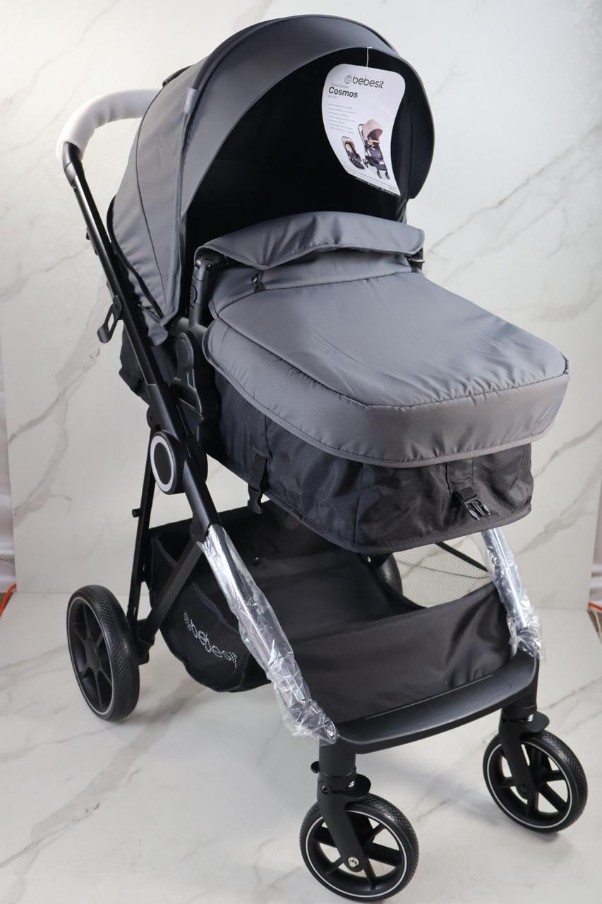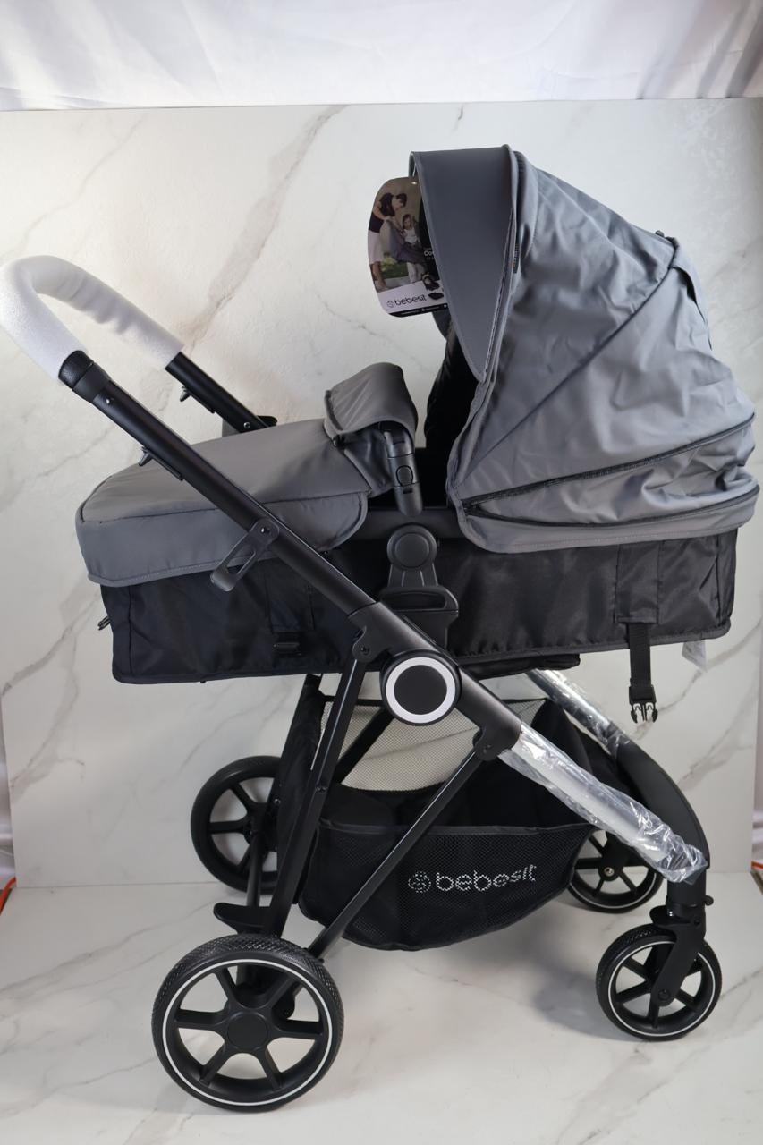 coche moisés con estructura en aluminio, llanta en caucho, 5 punto de seguridad, multipocional en el espaldar, reposapiés ajustable, porta biberones, cromado negro con dorado, tela con protección uv 50, asiento en 1 reversible,capota plegable, asiento con posiciones de reclinado, amplio portaobjetos y portavasos, se convierte en paseador