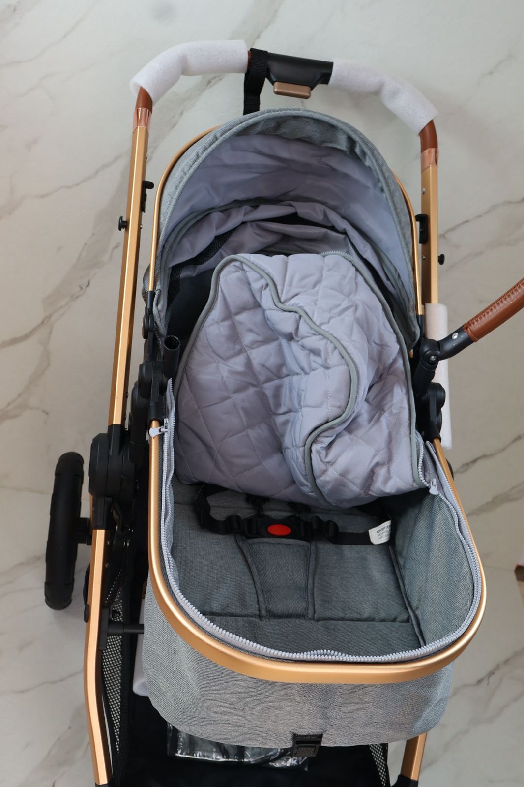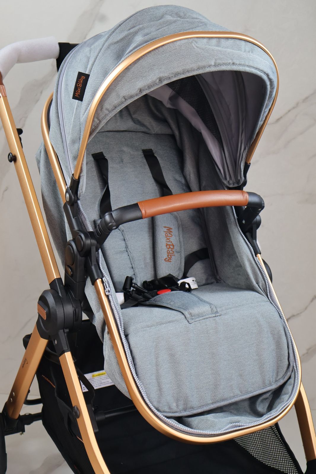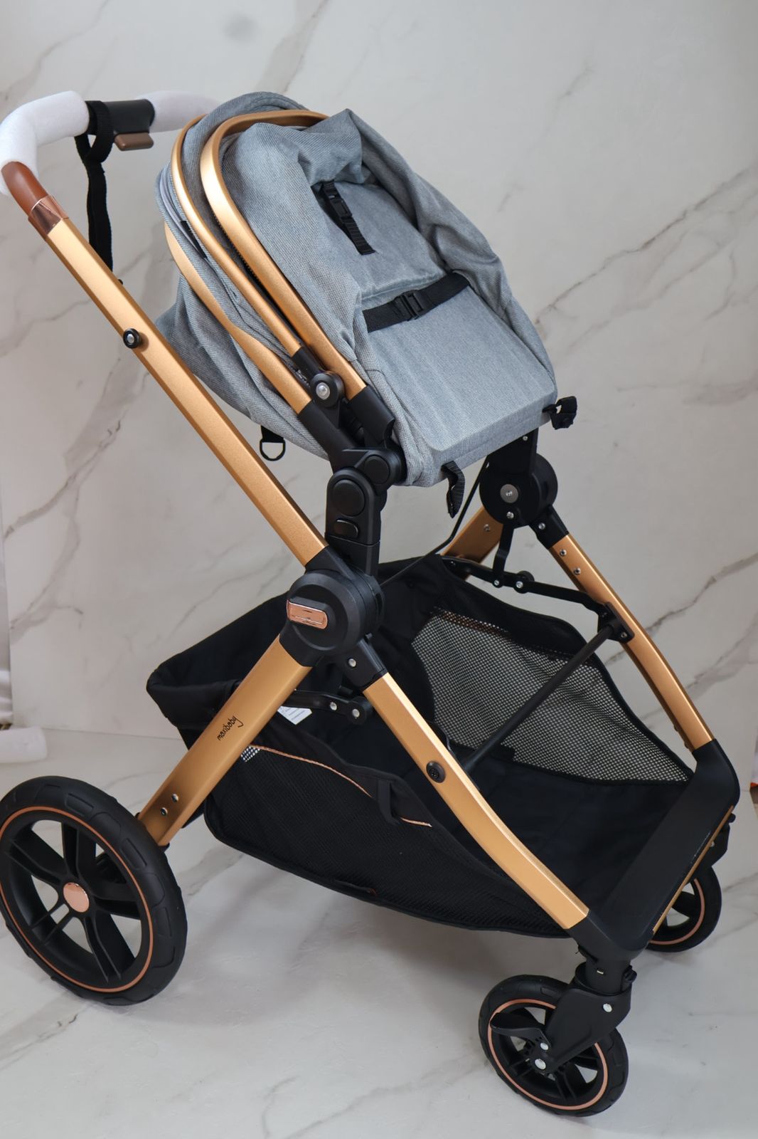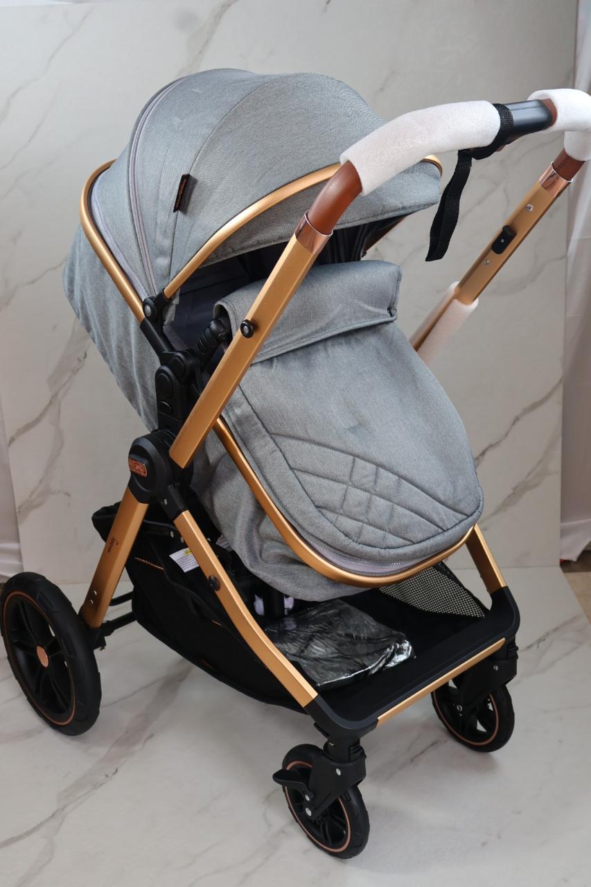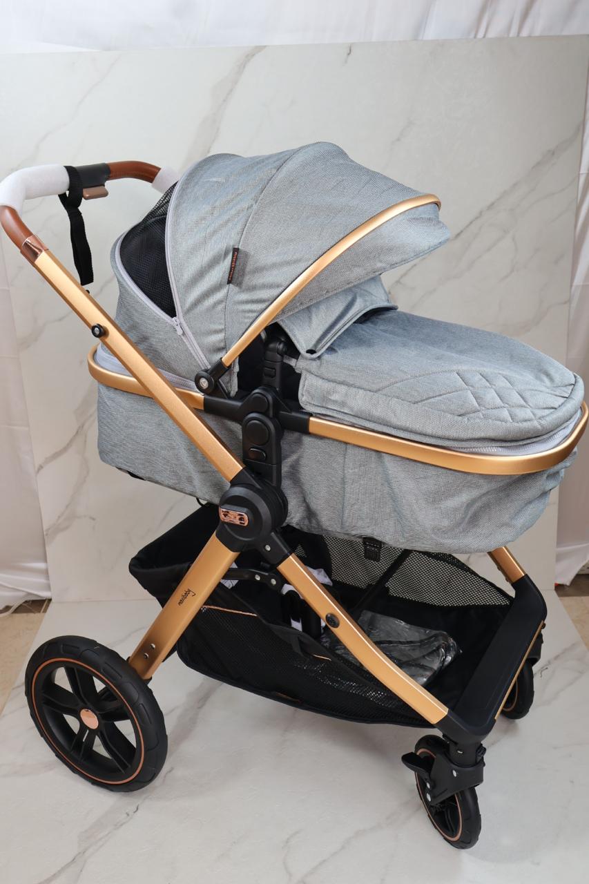 Coche con sistema de pliegue super compacto y rápido, estructura en aluminio resistente, llanta en caucho, capacidad de 0 a 15 kg, edad promedio de 0m a 3 años, con manija reversible, acolchonados extras, 5 puntos de seguridad y amortiguación, incluye