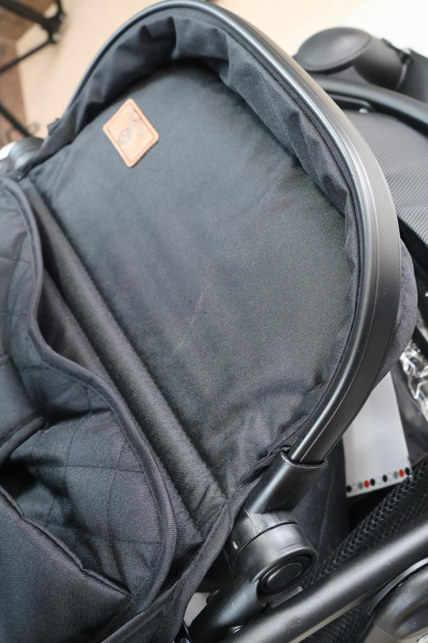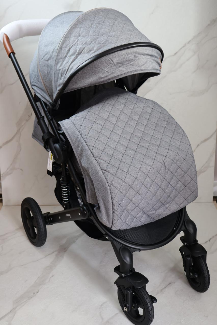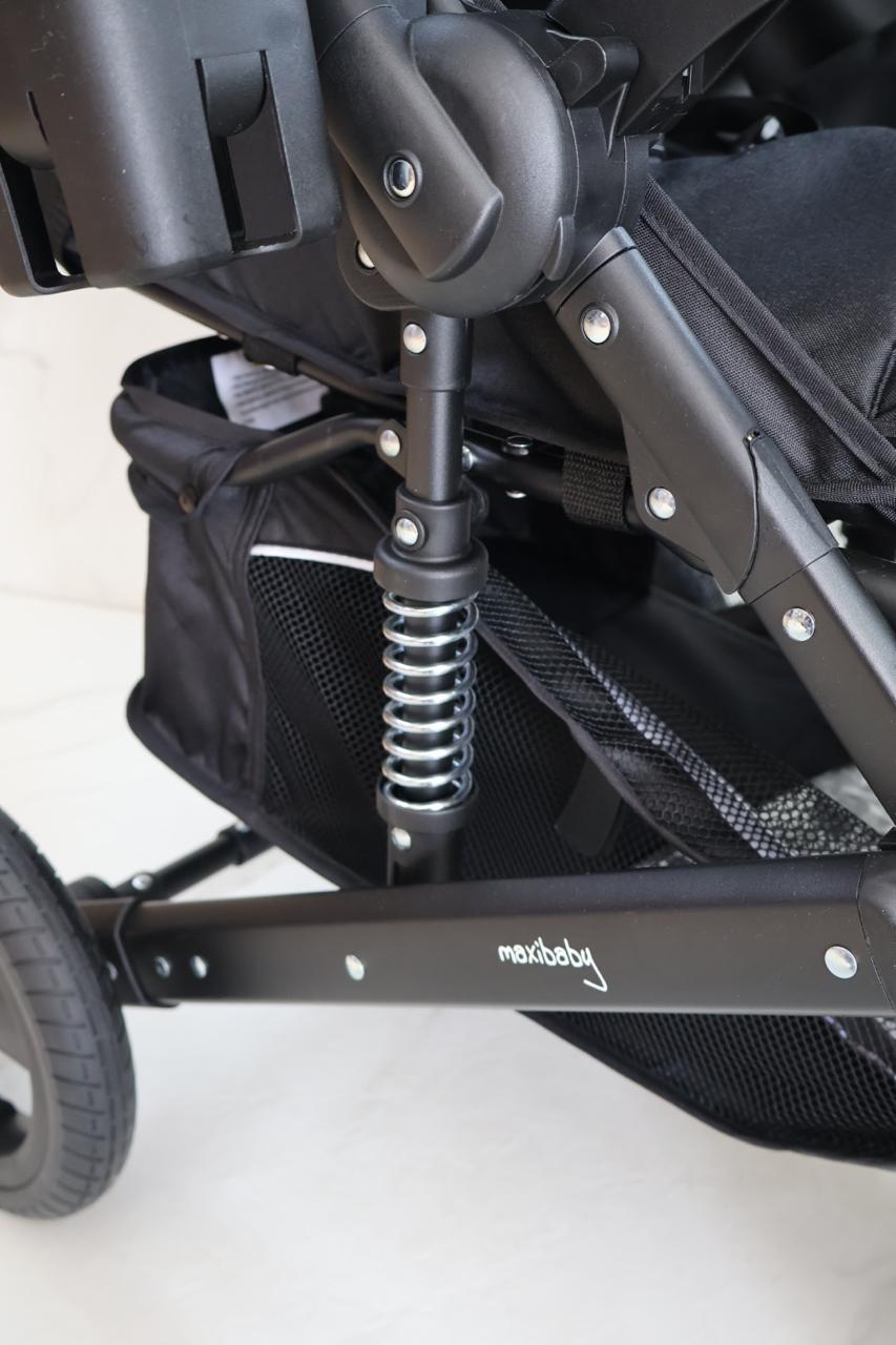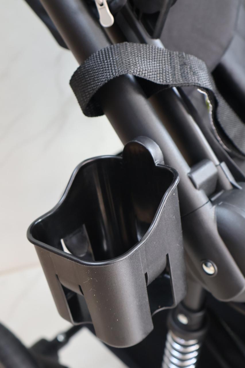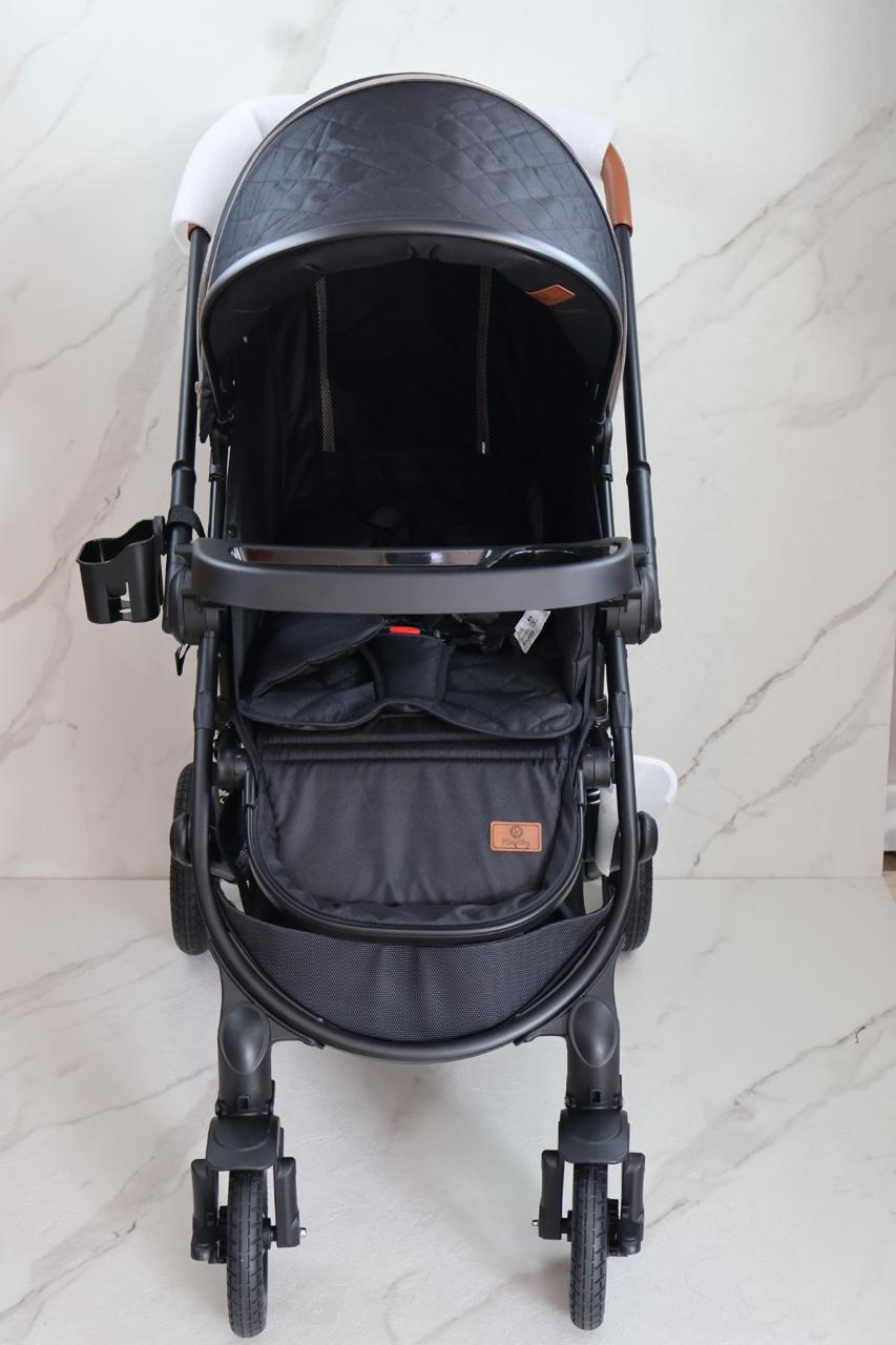 Coche con sistema de pliegue compacto y rápido, estructura en aluminio resistente, llanta en caucho, capacidad de 0 a 15 kg, edad promedio de 0m a 3 años, con manija reversible, acolchonados extras, cubrepiés, 5 puntos de seguridad, bandeja de comidas y amortiguación, incluye