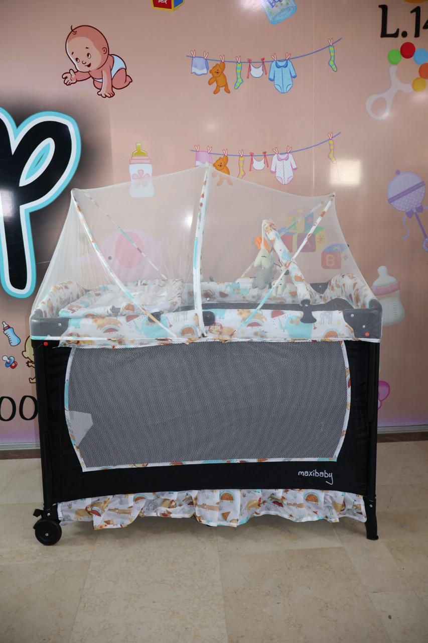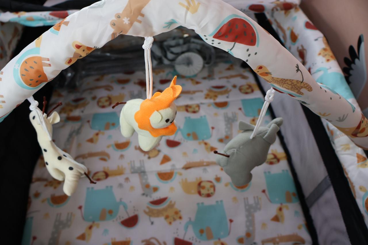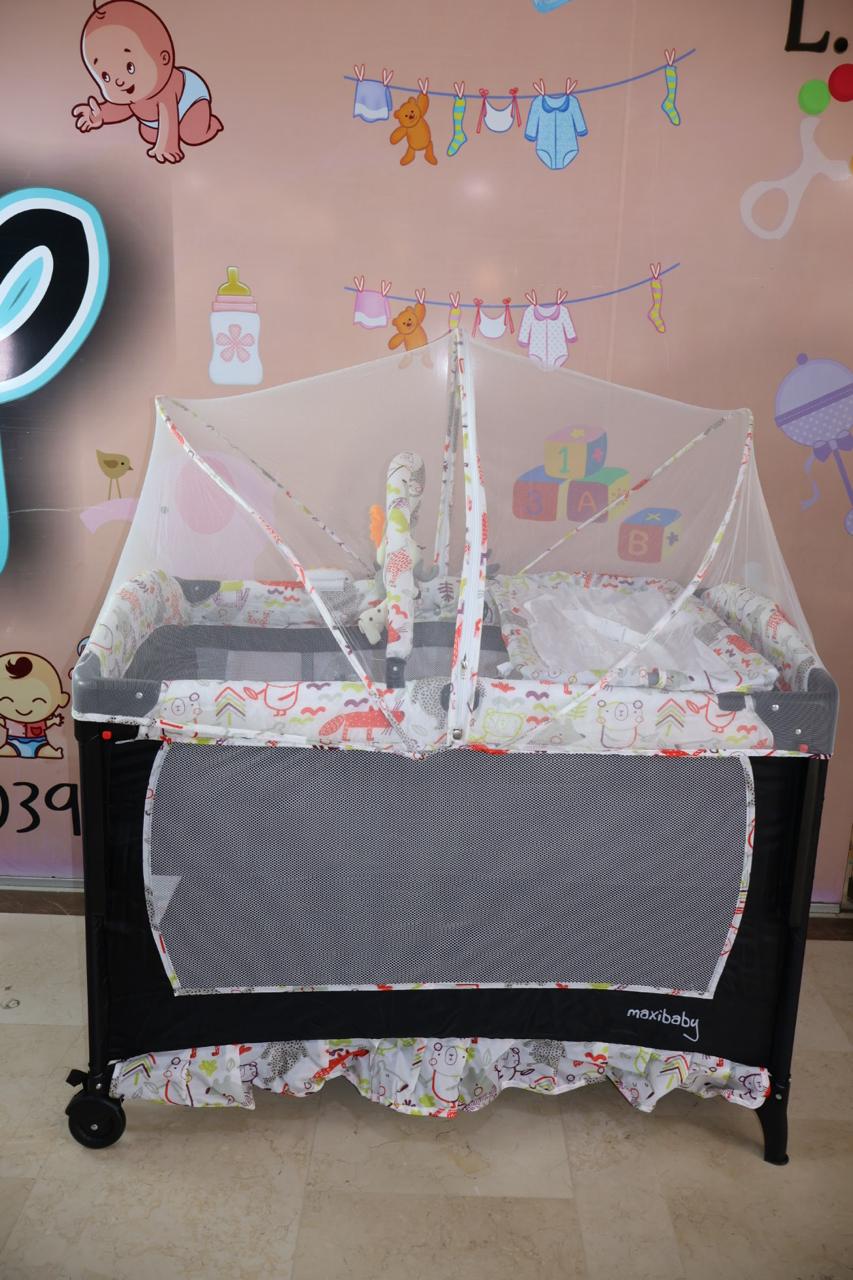 Cuna, corral, colecho monaco, medida de 70*110, cuenta con cambiador, toldillo redondo, monitor de vibración luces y sonido,mecedora, ruedas con freno, estuche para guardar, 3 ositos en felpa, mecedora